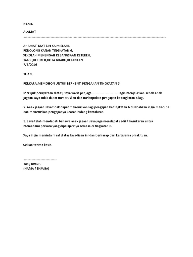 Contoh Surat Rayuan Berhenti Sekolah Pdf